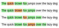 Here, the central word denote by the color orange and an window of size +-2
